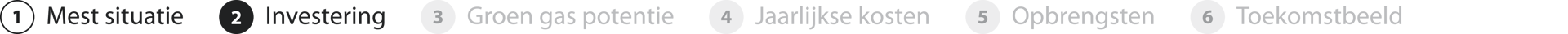 Door mest uit de buurt te laten aanvoeren kan je mogelijk voldoende volume behalen voor een robuuste business case. In de tool kan je de hoeveelheid aangevoerde mest elk moment aanpassen. Hiermee kan je makkelijk zien welke impact mestaanvoer heeft op jouw business case.